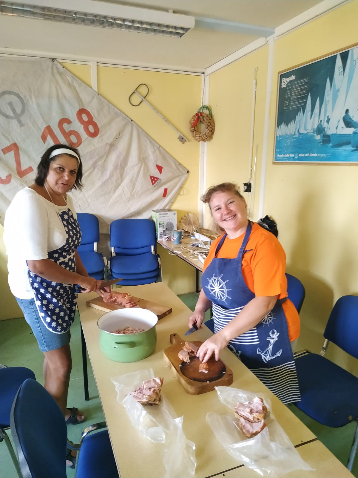 V podvečer domácí uspořádali Jachtovánoce. Vánoční stromek, dárky pro děti, smažený kapr 😉 Kdo z dospělých přišel v zimním oblečení, dostal na baru odměnu.
